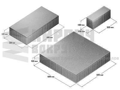 | Количество, шт./м2 | 600х600мм/ 2,8 шт; 600х300мм/ 5,6 шт; 100х300мм / 33,3 шт |